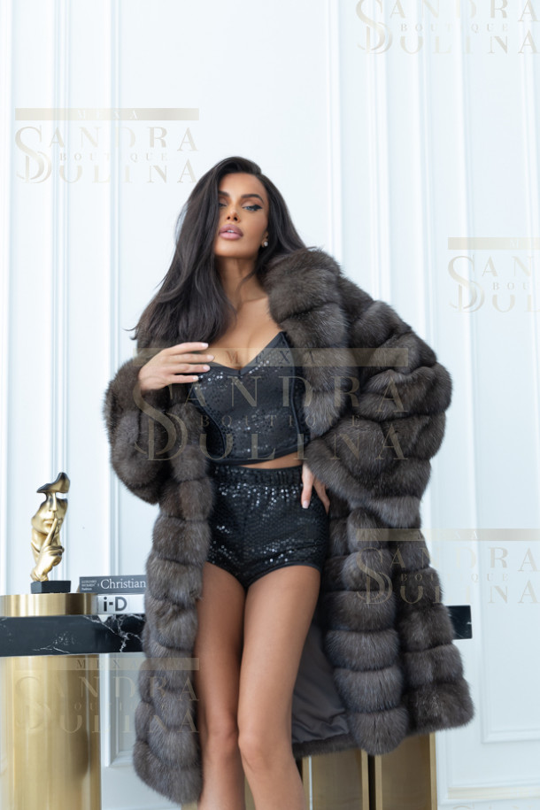 Шуба "Тёмная глубина" из баргузинского соболя представляет собой образец элегантности и роскоши. Модель выполнена в глубоком цвете дарк с выразительной сединой степени 3/4, что придает меху особую глубину и благородство. Поперечная раскладка искусно подчеркивает природную красоту соболя, создавая эффект объемности и богатства. Широкий рукав с изысканной отделкой ёлочка добавляет образу утонченности и комфорта. Универсальная длина 90 см делает эту шубу идеальной для различных мероприятий. Изготовленная из аукционного меха СОЮЗПУШНИНА, шуба гарантирует высочайшее качество и долговечность. Это выбор для тех, кто ценит timeless элегантность и безупречное качество.